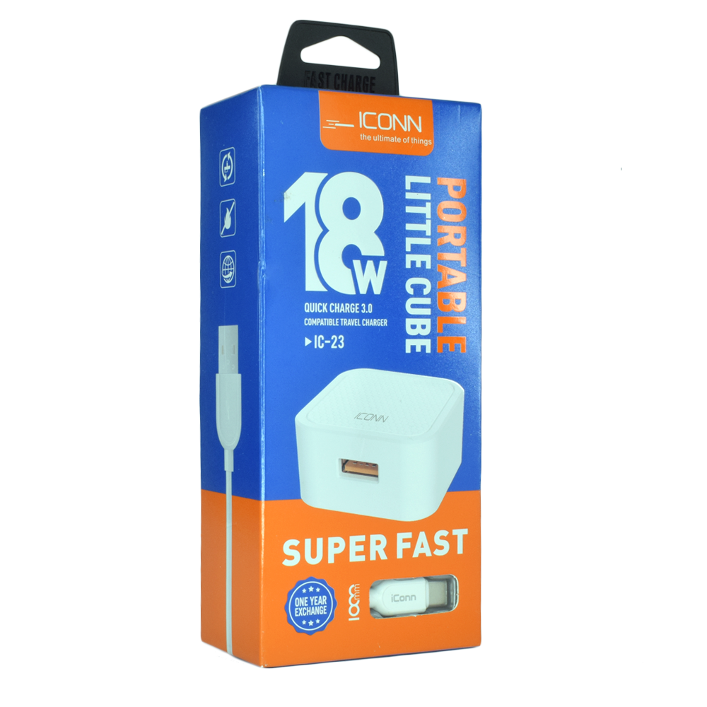 Adapter / Polnac so kabel - iConn IC-23 - Type C 18W - Super Fast Charge - White