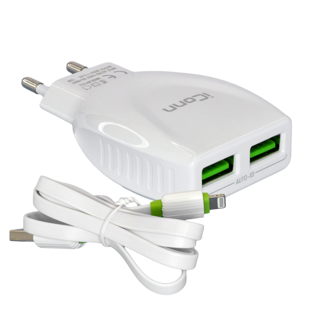 Adapter / Polnac so kabel - iConn Auto ID Lightning - White