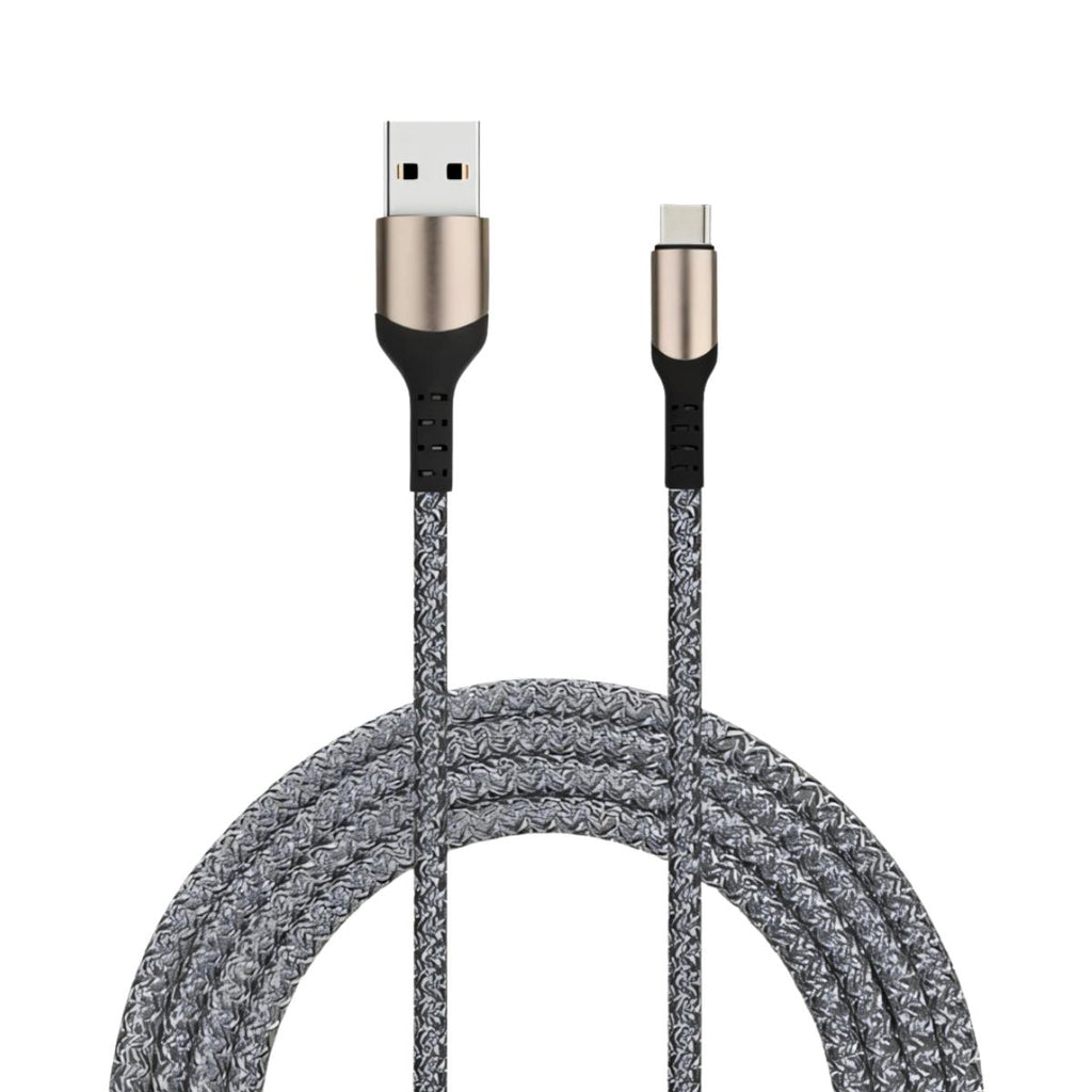 Кабел за полнење на телефон - УСБ во Тип Ц - 2m - Сива боја - плетен кабел
